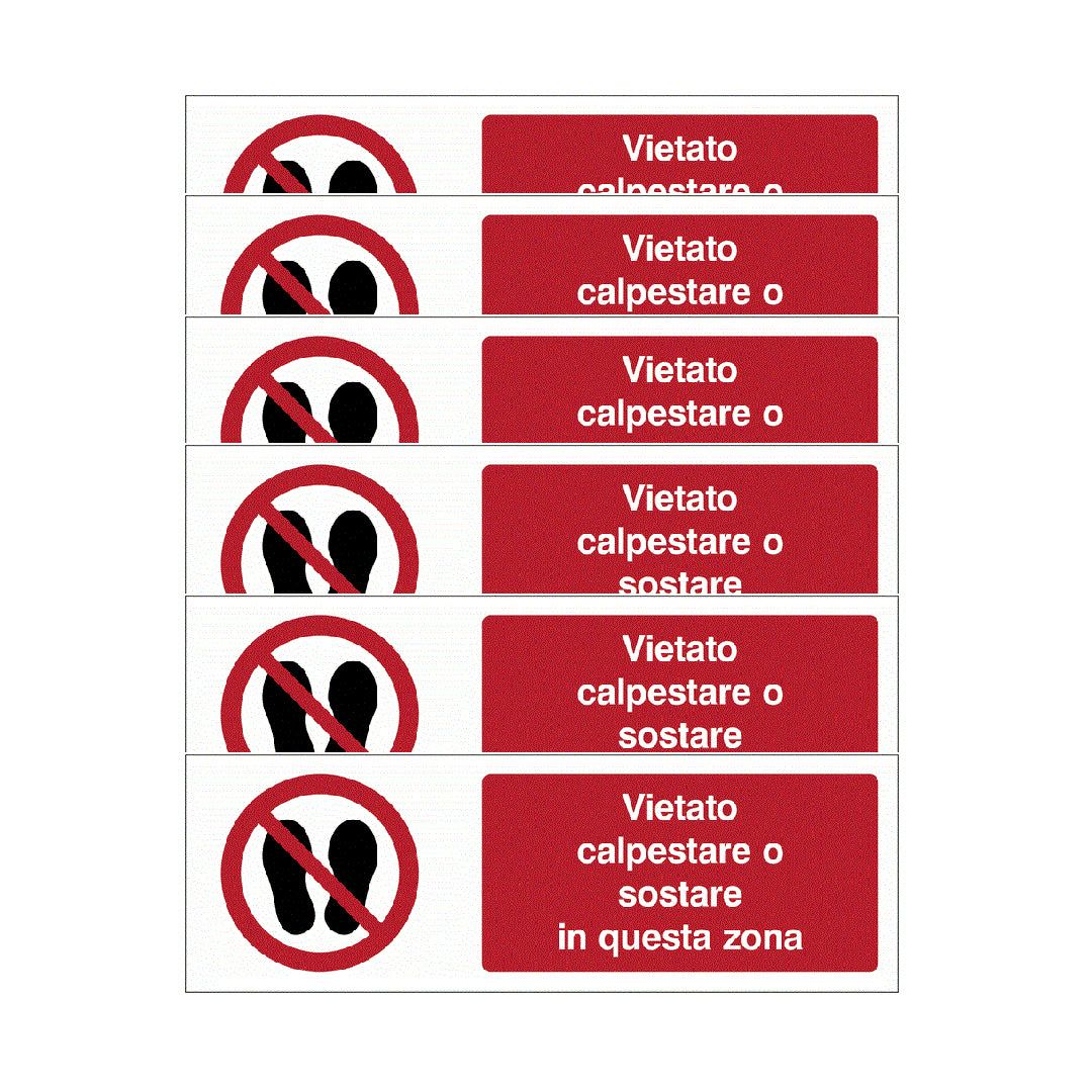 KIT DI 6 ADESIVI UNI - "Vietato calpestare o sostare in questa zona"- Pittogramma ISO 7010 Con Stampa Diretta U.V. (IDEALE ANCHE PER ESTERNO)