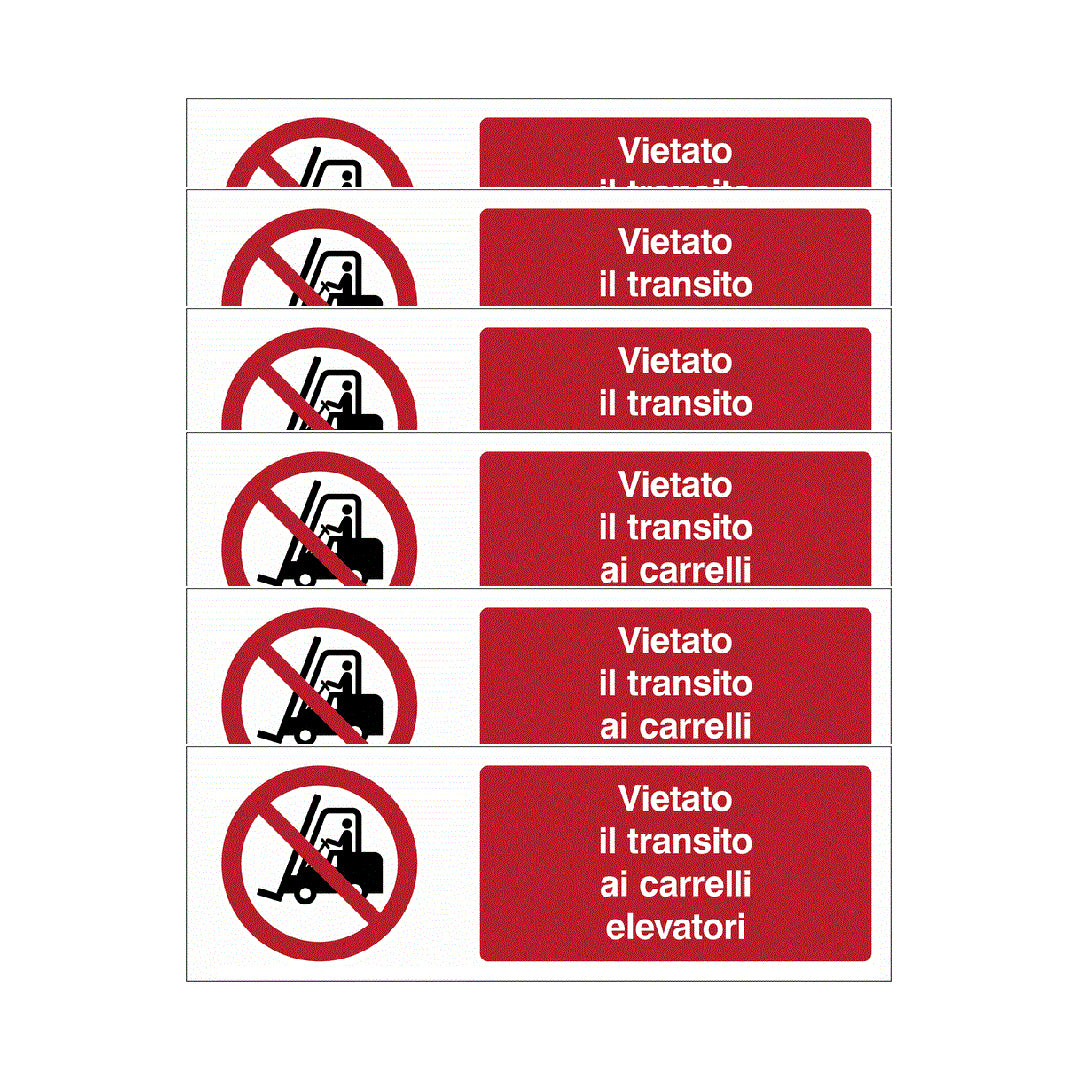 KIT DI 6 ADESIVI UNI - Vietato il transito ai carrelli elevatori- Pittogramma ISO 7010 Con Stampa Diretta U.V. (IDEALE ANCHE PER ESTERNO)