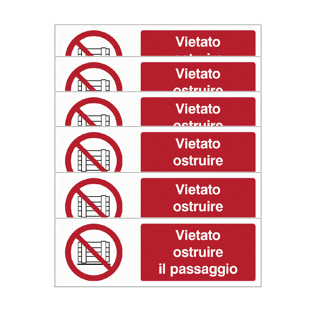 KIT DI 6 ADESIVI UNI - Vietato ostruire il passaggio- Pittogramma ISO 7010 Con Stampa Diretta U.V. (IDEALE ANCHE PER ESTERNO)