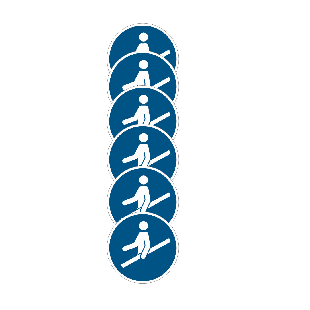 KIT DI 6 ADESIVI - "Usare il corrimano"- Pittogramma ISO 7010 Con Stampa Diretta U.V. (IDEALE ANCHE PER ESTERNO)