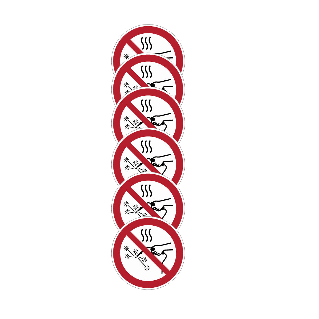KIT DI 6 ADESIVI - "Vietato eseguire lavori a caldo"- Pittogramma ISO 7010 Con Stampa Diretta U.V. (IDEALE ANCHE PER ESTERNO)