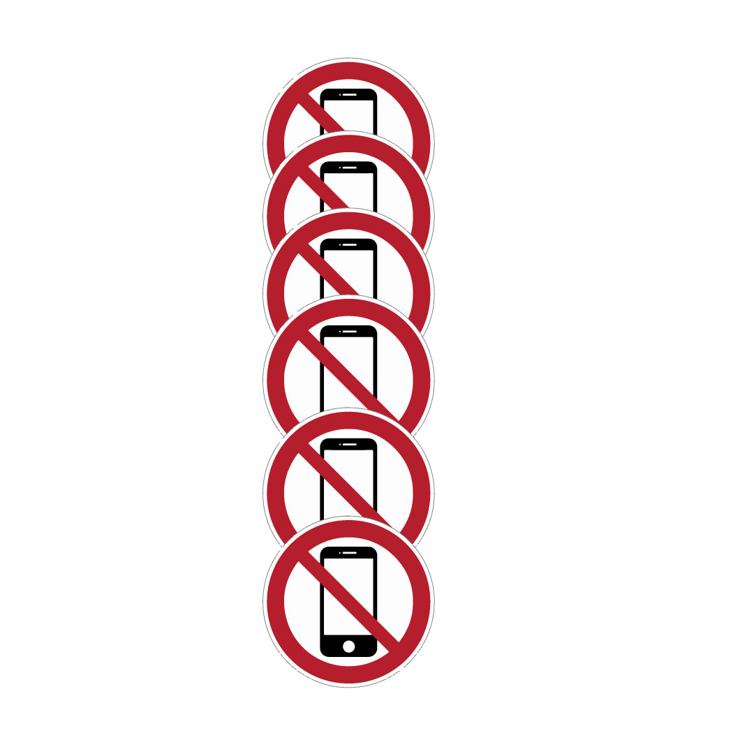 KIT DI 6 ADESIVI - "Vietato l'uso di telefoni cellulari" - Pittogramma ISO 7010 Con Stampa Diretta U.V. (IDEALE ANCHE PER ESTERNO)