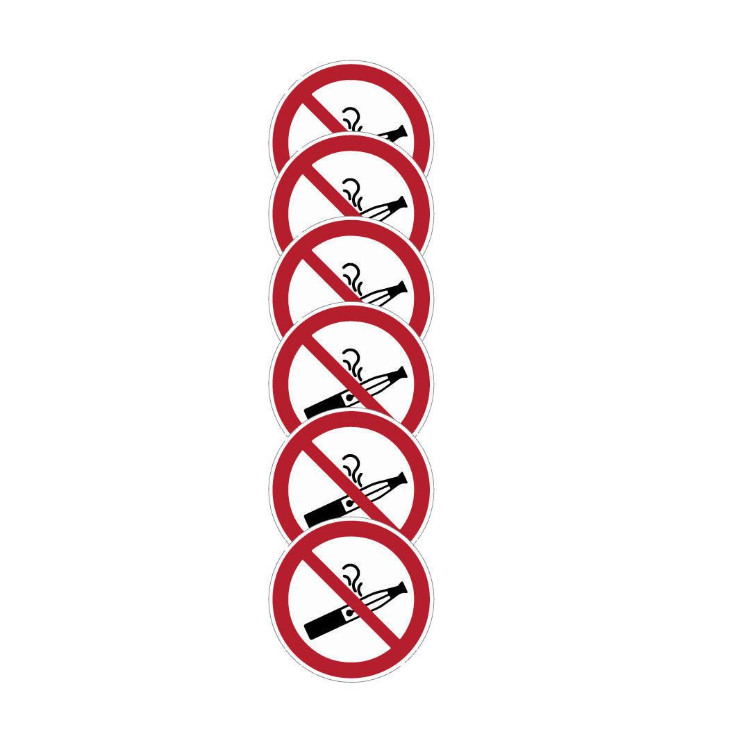 KIT DI 6 ADESIVI - "Vietato svapare"- Pittogramma ISO 7010 Con Stampa Diretta U.V. (IDEALE ANCHE PER ESTERNO)