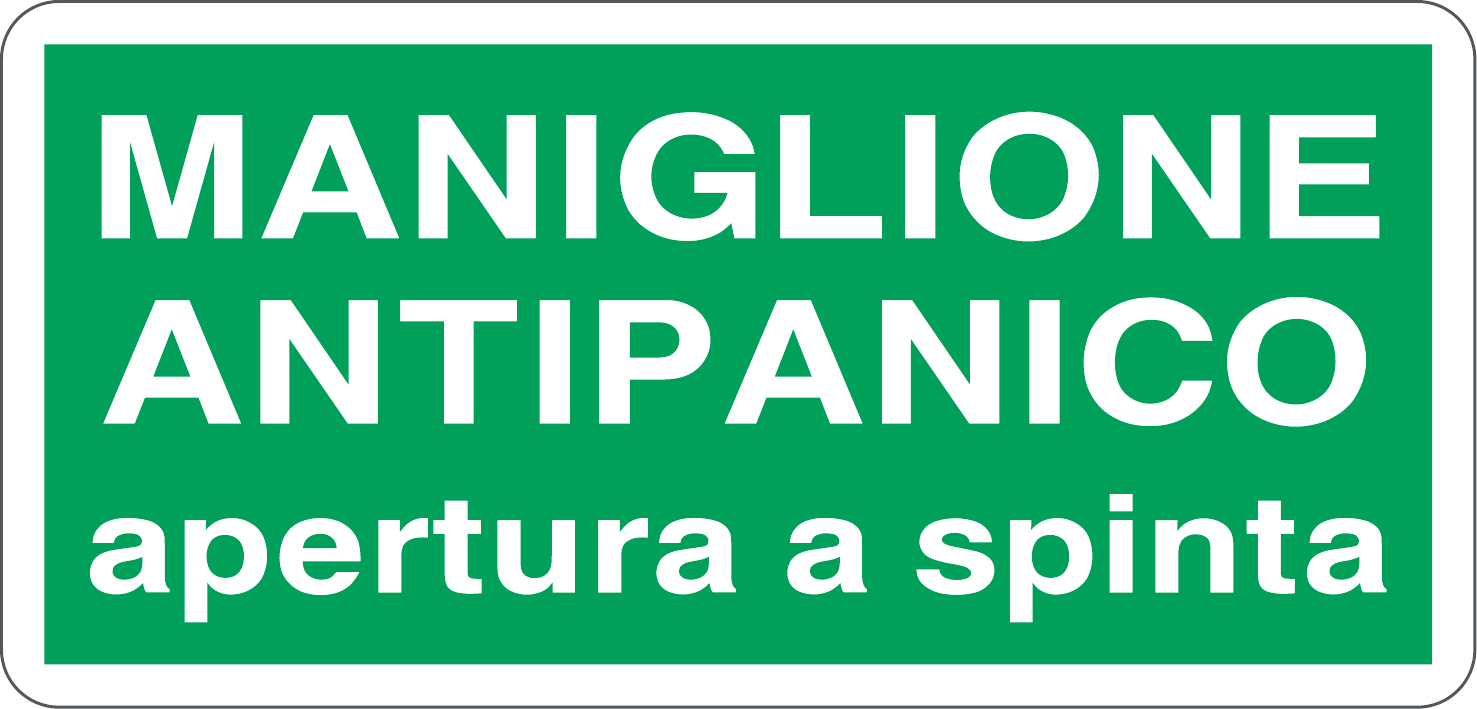 MANIGLIONE ANTIPANICO APERTURA A SPINTA - CARTELLO SEGNALETICO UNI ISO 7010 in Adesivo, Pannello in Forex, Pannello In Alluminio