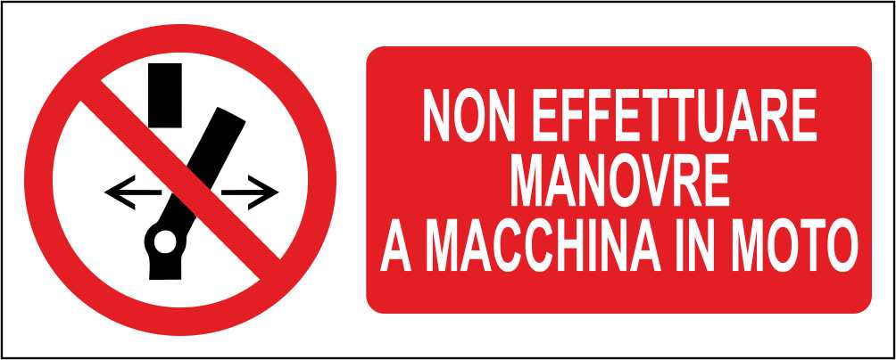 Non effettuare manovre a macchina in moto - CARTELLO SEGNALETICO UNI ISO 7010 in Adesivo Resistente, Pannello in Forex, Pannello In Alluminio