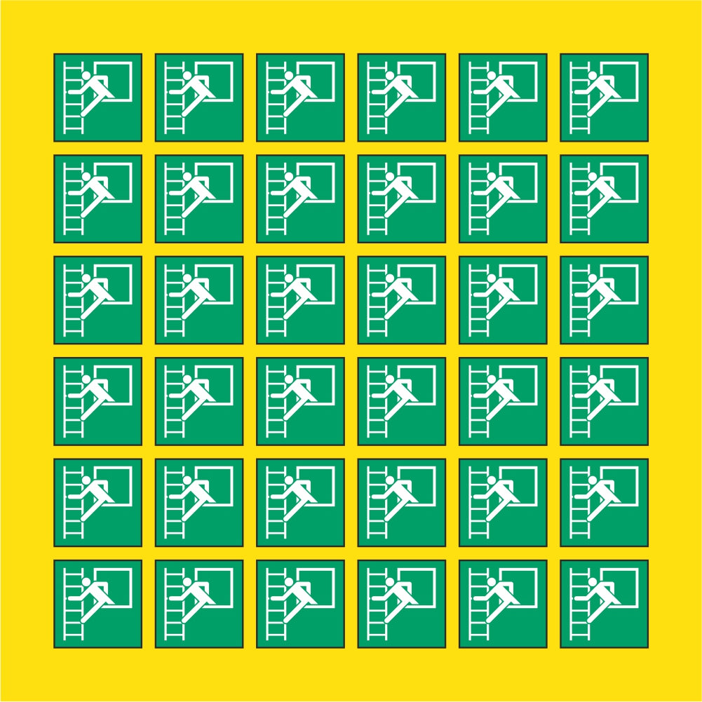 PACCO DA 6 KIT DI 6 ADESIVI QUADRATI - Finestra di soccorso con scala di soccorso - Pittogramma ISO 7010 Con Stampa Diretta U.V.