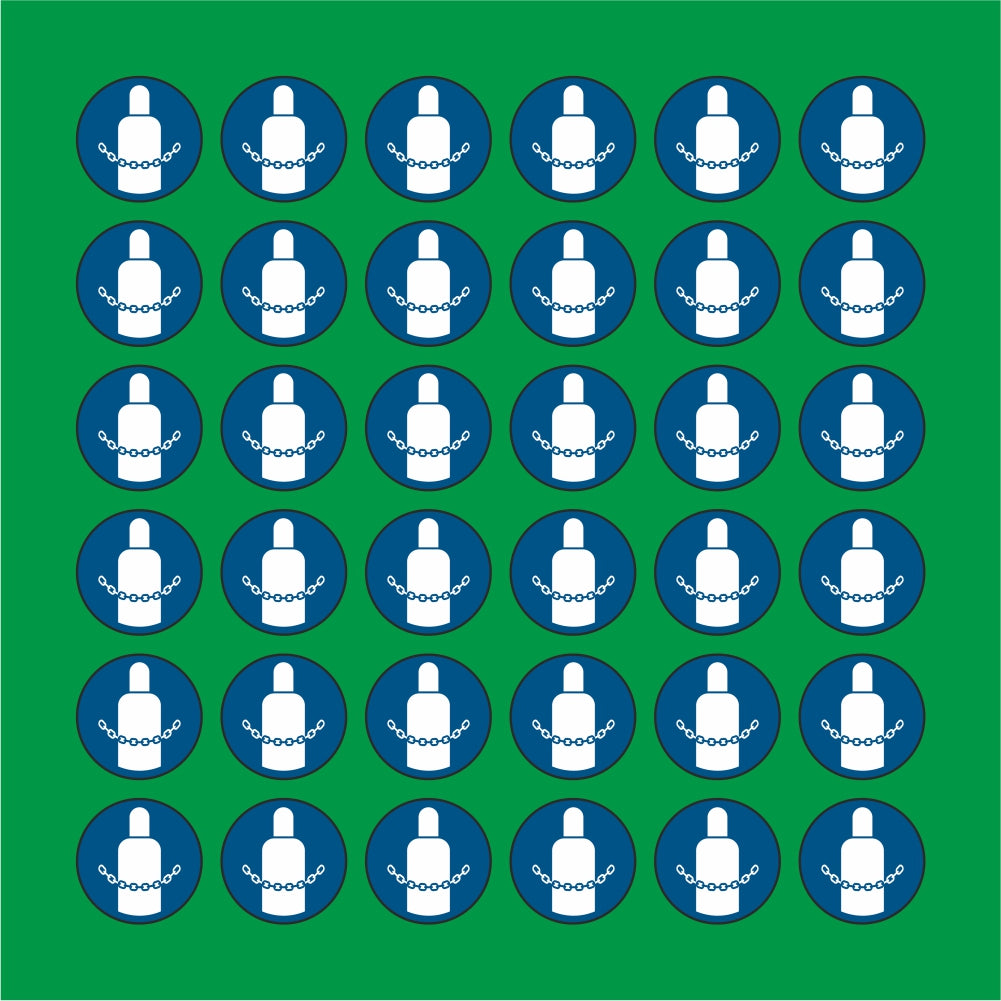 PACCO DA 6 KIT DI 6 ADESIVI ROTONDI - È obbligatorio assicurare le bombole di gas - Pittogramma ISO 7010 Con Stampa Diretta U.V.