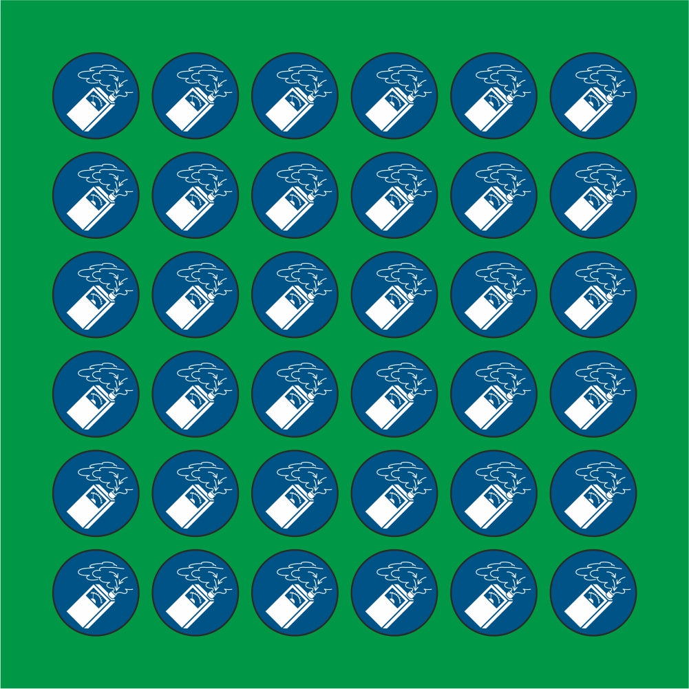 PACCO DA 6 KIT DI 6 ADESIVI ROTONDI - È obbligatorio usare il rilevatore di gas - Pittogramma ISO 7010 Con Stampa Diretta U.V.
