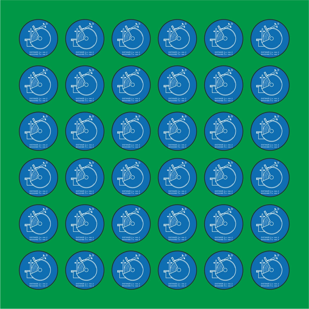 PACCO DA 6 KIT DI 6 ADESIVI ROTONDI - MOLA DISTANZE MASSIME A..B... - Pittogramma ISO 7010 Con Stampa Diretta U.V.
