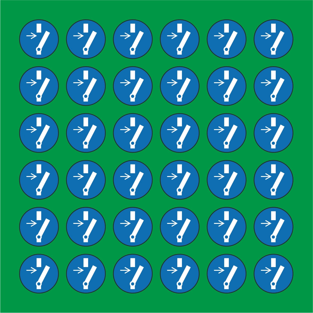 PACCO DA 6 KIT DI 6 ADESIVI ROTONDI - OBBLIGO DISCONNETTERE MACCHINARIO PRIMA DI EFFETTUARE MANUTENZIONI O RIPARAZIONI - Pittogramma ISO 7010 Con Stampa Diretta U.V.