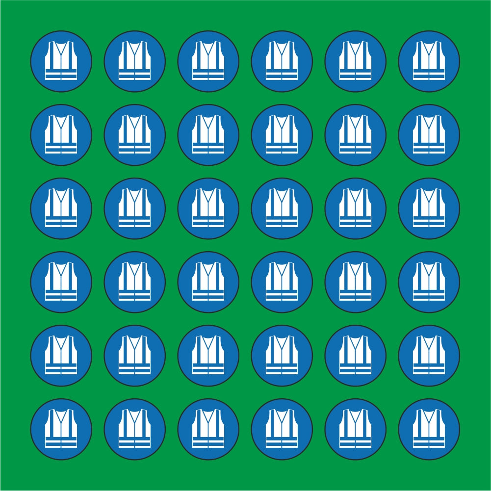 PACCO DA 6 KIT DI 6 ADESIVI ROTONDI - OBBLIGO USO INDUMENTI AD ALTA VISIBILITA' - Pittogramma ISO 7010 Con Stampa Diretta U.V.