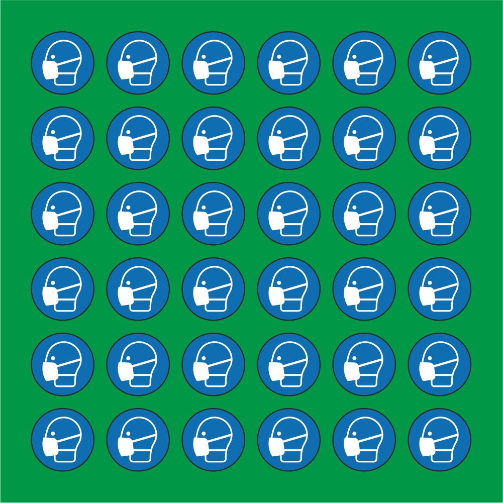 PACCO DA 6 KIT DI 6 ADESIVI ROTONDI - OBBLIGO USO MASCHERINA - Pittogramma ISO 7010 Con Stampa Diretta U.V.