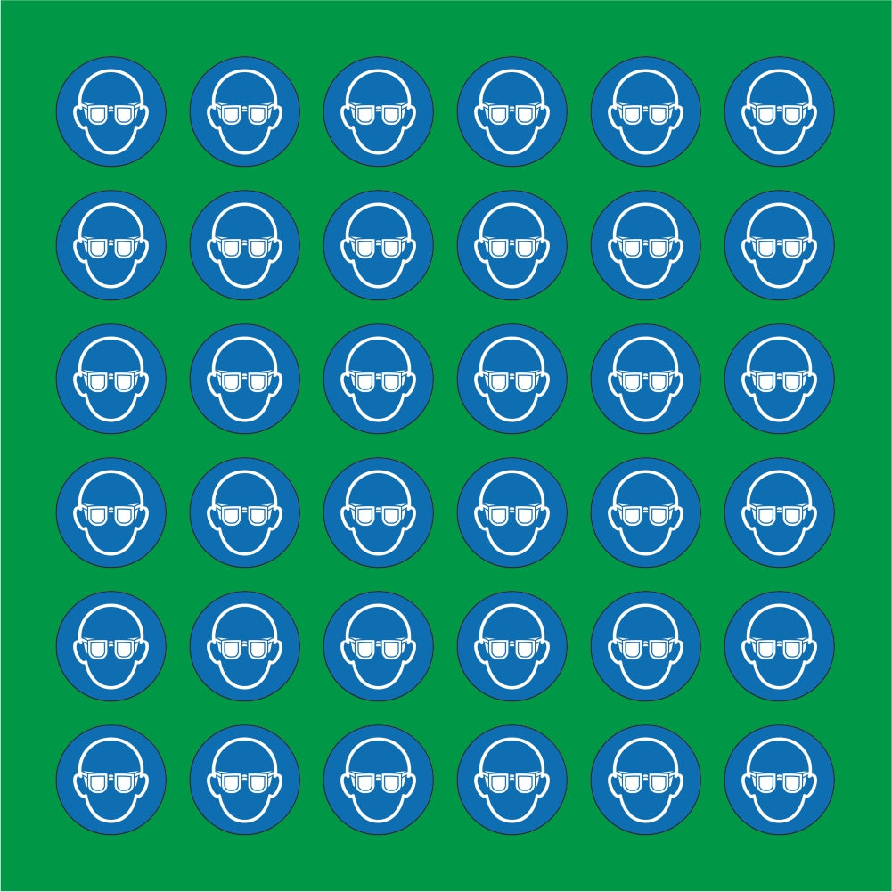 PACCO DA 6 KIT DI 6 ADESIVI ROTONDI - OBBLIGO USO OCCHIALI - Pittogramma ISO 7010 Con Stampa Diretta U.V.