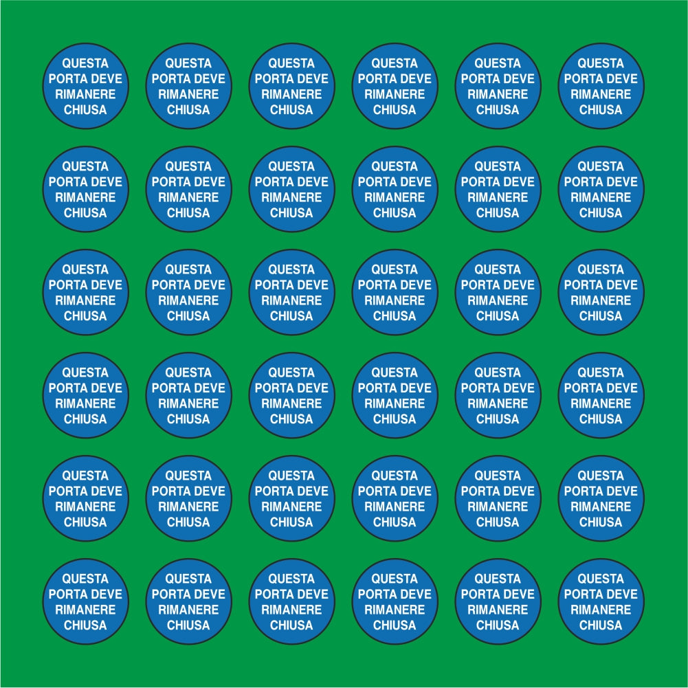 PACCO DA 6 KIT DI 6 ADESIVI ROTONDI - QUESTA PORTA DEVE RIMANERE CHIUSA - Pittogramma ISO 7010 Con Stampa Diretta U.V.
