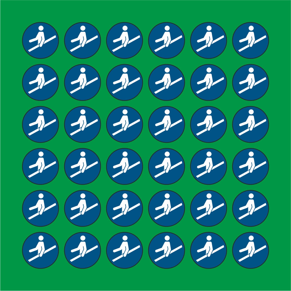 PACCO DA 6 KIT DI 6 ADESIVI ROTONDI - usare il corrimano - Pittogramma ISO 7010 Con Stampa Diretta U.V.