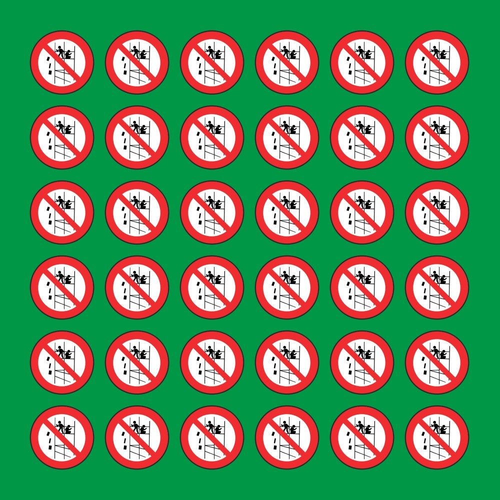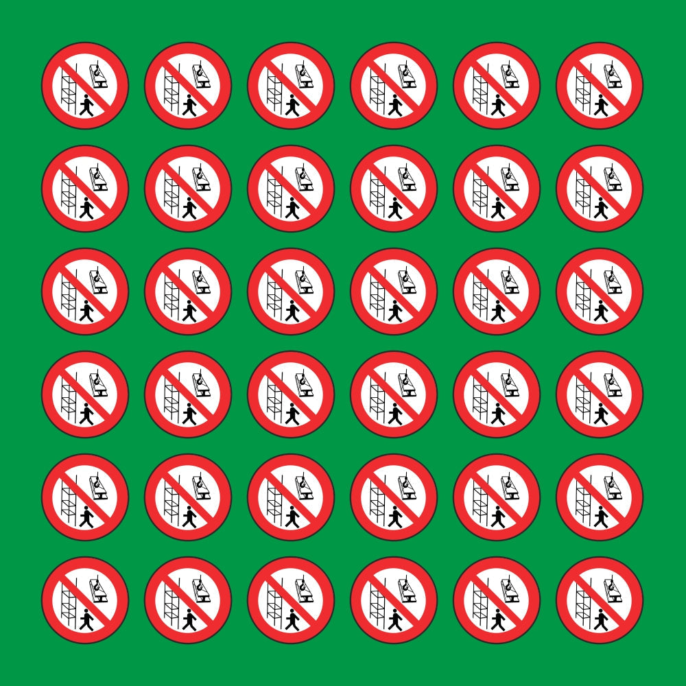 PACCO DA 6 KIT DI 6 ADESIVI ROTONDI - VIETATO GETTARE MATERIALI DAI PONTEGGI - Pittogramma ISO 7010 Con Stampa Diretta U.V.