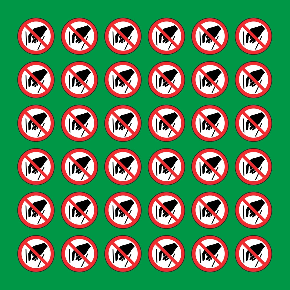 PACCO DA 6 KIT DI 6 ADESIVI ROTONDI - VIETATO INTRODURRE LE MANI - Pittogramma ISO 7010 Con Stampa Diretta U.V.