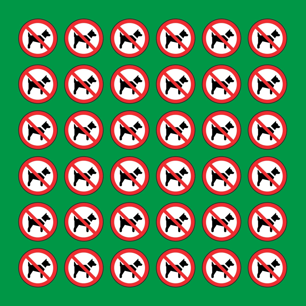 PACCO DA 6 KIT DI 6 ADESIVI ROTONDI - VIETATO L'ACCESSO AI CANI - Pittogramma ISO 7010 Con Stampa Diretta U.V.