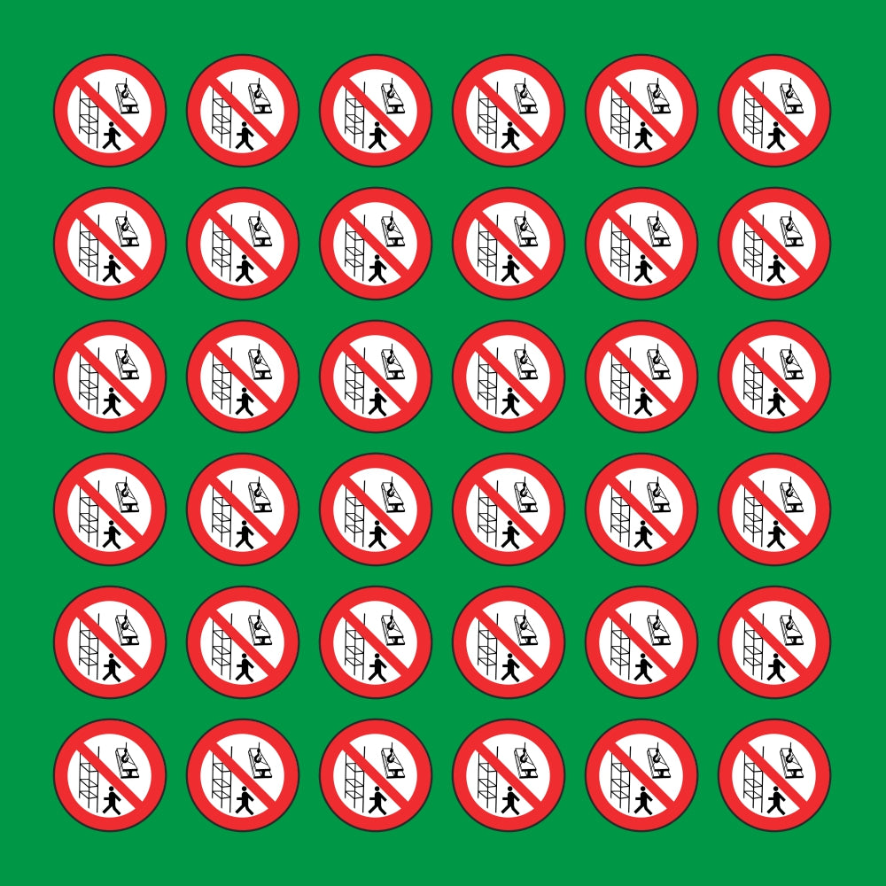 PACCO DA 6 KIT DI 6 ADESIVI ROTONDI - VIETATO PASSARE SOTTO CARICHI SOSPESI - Pittogramma ISO 7010 Con Stampa Diretta U.V.