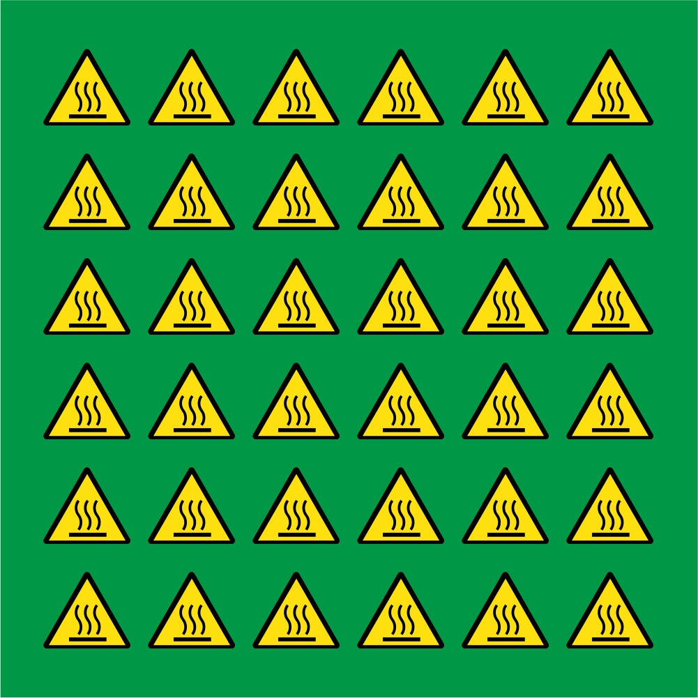 PACCO DA 6 KIT DI 6 ADESIVI TRIANGOLARI - PERICOLO ALTE TEMPERATURE - Pittogramma ISO 7010 Con Stampa Diretta U.V.