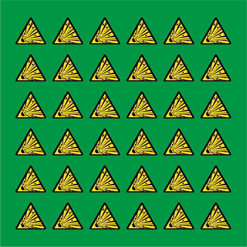 PACCO DA 6 KIT DI 6 ADESIVI TRIANGOLARI - PERICOLO MATERIALE ESPLOSIVO - Pittogramma ISO 7010 Con Stampa Diretta U.V.