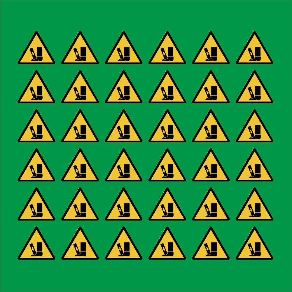 PACCO DA 6 KIT DI 6 ADESIVI TRIANGOLARI - Pericolo schiacciamento piedi - Pittogramma ISO 7010 Con Stampa Diretta U.V.