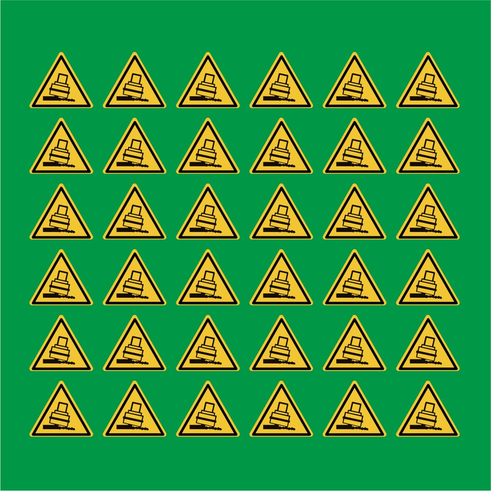 PACCO DA 6 KIT DI 6 ADESIVI TRIANGOLARI - Rischio di ribaltamento - Pittogramma ISO 7010 Con Stampa Diretta U.V.