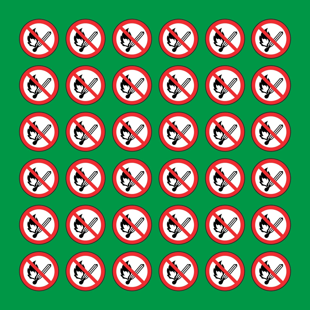 PACCO DA 6 KIT DI 6 ADESIVI ROTONDI - VIETATO FUMARE E USARE FIAMME LIBERE - Pittogramma ISO 7010 Con Stampa Diretta U.V.