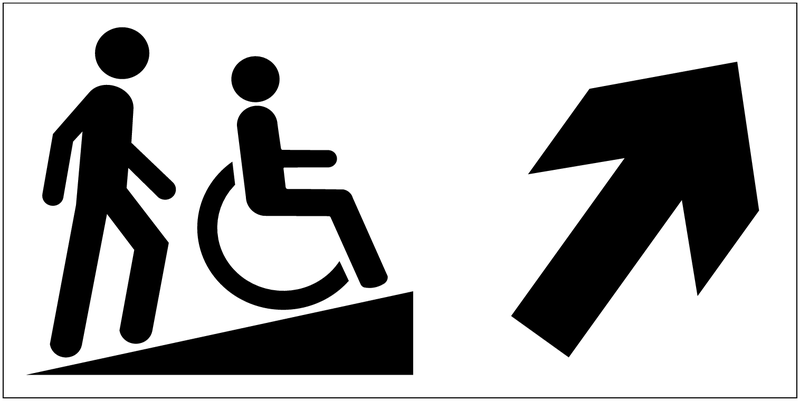 Rampa di accesso disabili - Freccia direzionale - CARTELLO SEGNALETICO UNI 7010 in Adesivo Resistente, Pannello in Forex, Pannello In Alluminio o in Plexiglas