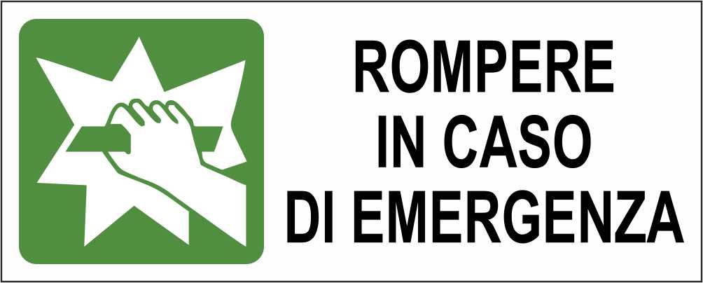 ROMPERE IN CASO DI EMERGENZA - CARTELLO SEGNALETICO UNI ISO 7010 in Adesivo Resistente, Pannello in Forex, Pannello In Alluminio