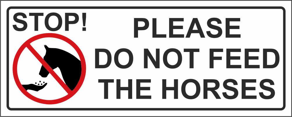STOP PER FAVORE NON ALIMENTARE I CAVALLI - CARTELLO SEGNALETICO UNI ISO 7010 in Adesivo Resistente, Pannello in Forex, Pannello In Alluminio