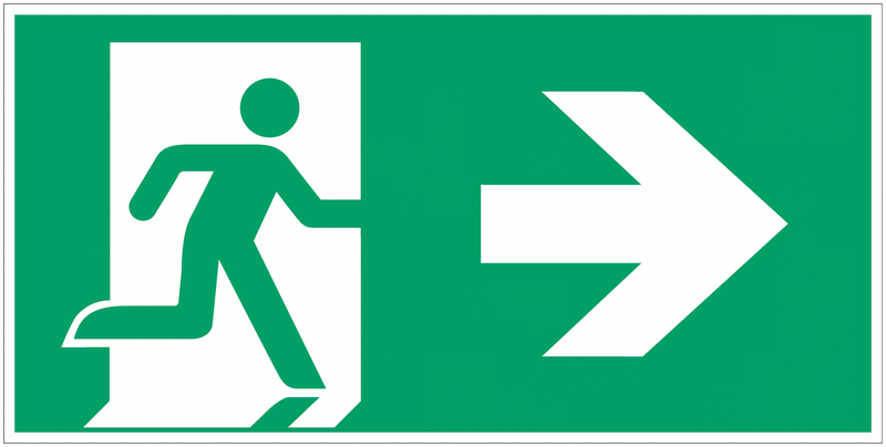 Uomo che corre a destra, freccia a destra - CARTELLO SEGNALETICO UNI 7010 in Adesivo Resistente, Pannello in Forex, Pannello In Alluminio o in Plexiglas