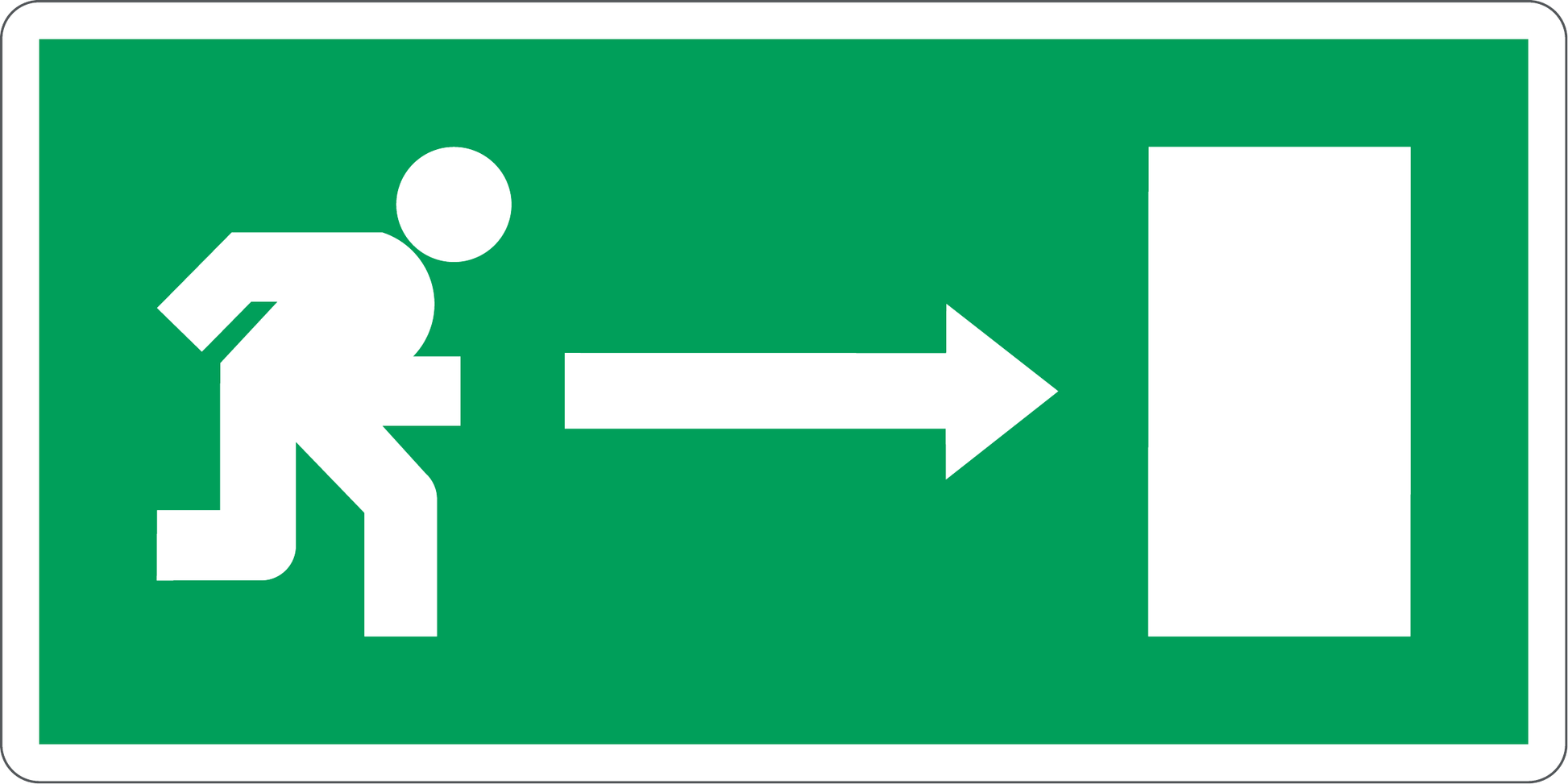 USCITA DI EMERGENZA DESTRA NORMA CE - CARTELLO SEGNALETICO UNI ISO 7010 in Adesivo, Pannello in Forex, Pannello In Alluminio