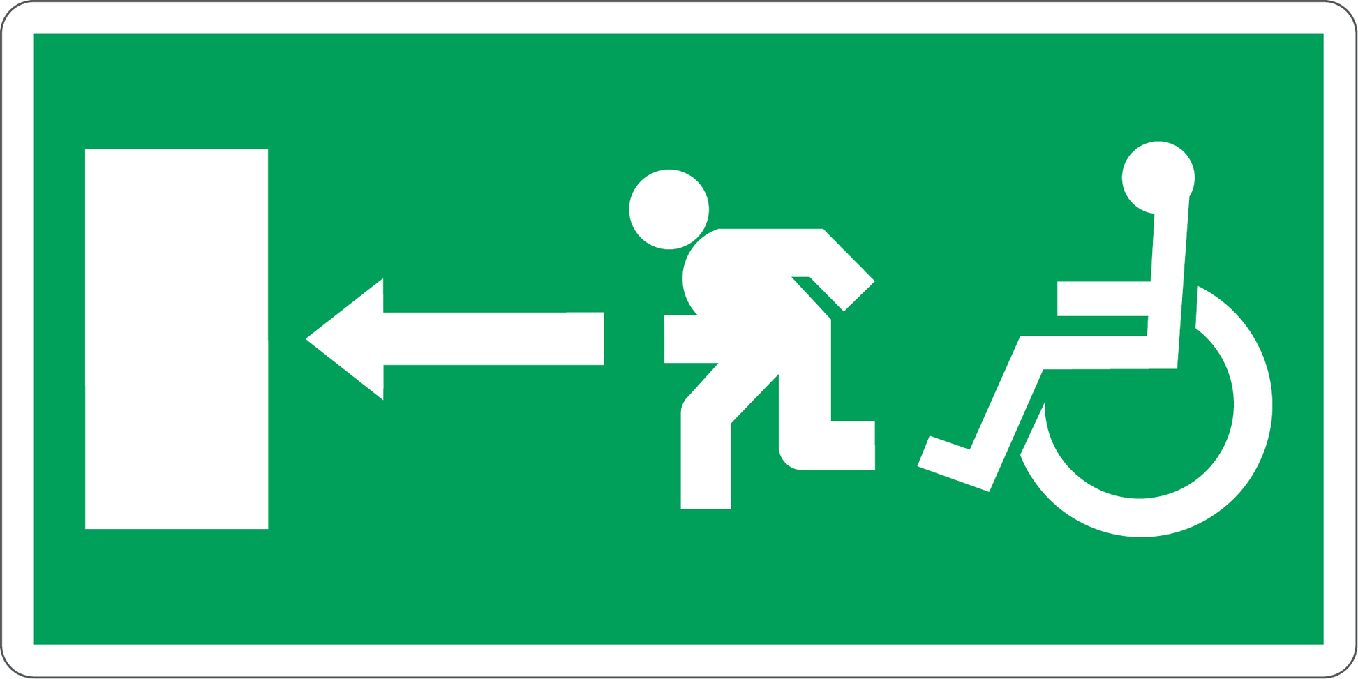 USCITA DI EMERGENZA DISABILI SINISTRA NORMA CE - CARTELLO SEGNALETICO UNI ISO 7010 in Adesivo, Pannello in Forex, Pannello In Alluminio