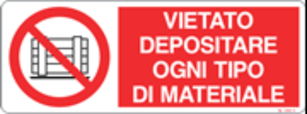VIETATO DEPOSITARE OGNI TIPO DI MATERIALE - CARTELLO SEGNALETICO UNI ISO 7010 in Adesivo, Pannello in Forex, Pannello In Alluminio