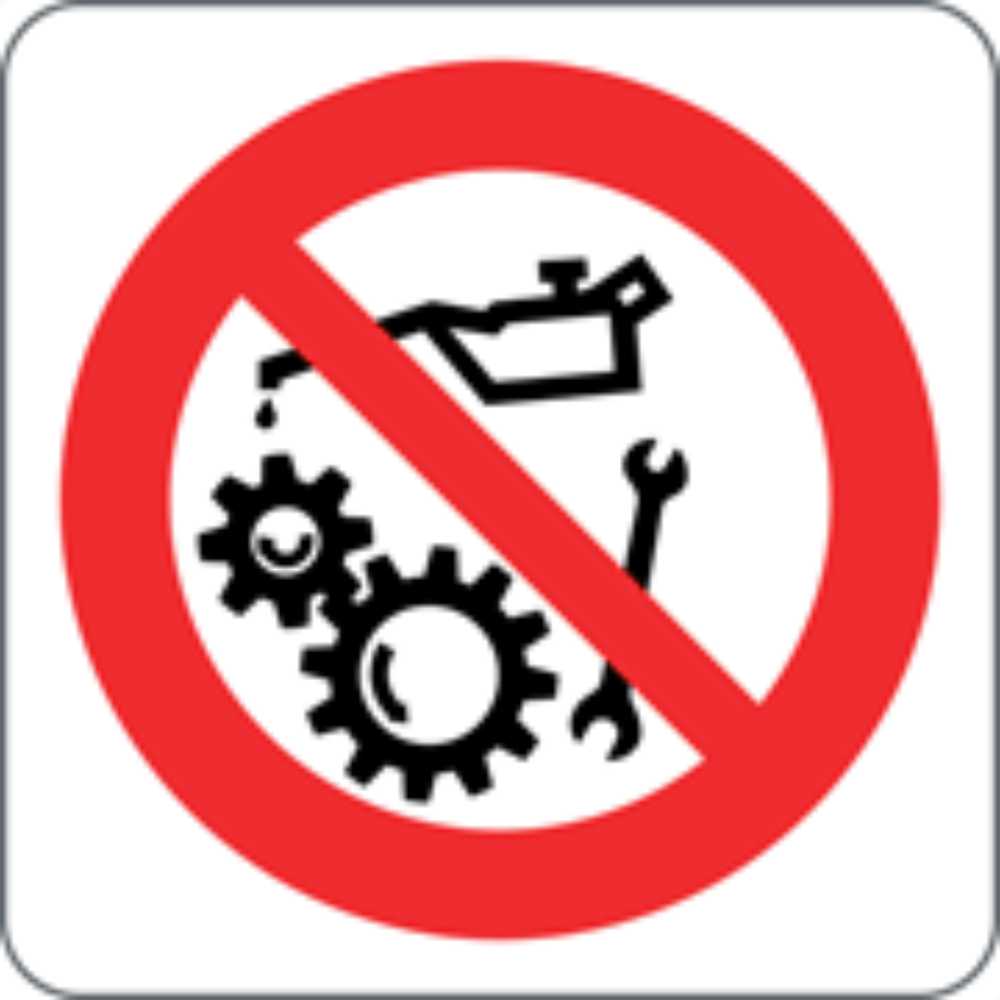 VIETATO RIPARARE, REGISTRARE, OLIARE CON ORGANI IN MOTO - CARTELLO SEGNALETICO QUADRATO ISO 7010 - Adesivo Extra Resistente, Pannello in Forex, Pannello In Alluminio